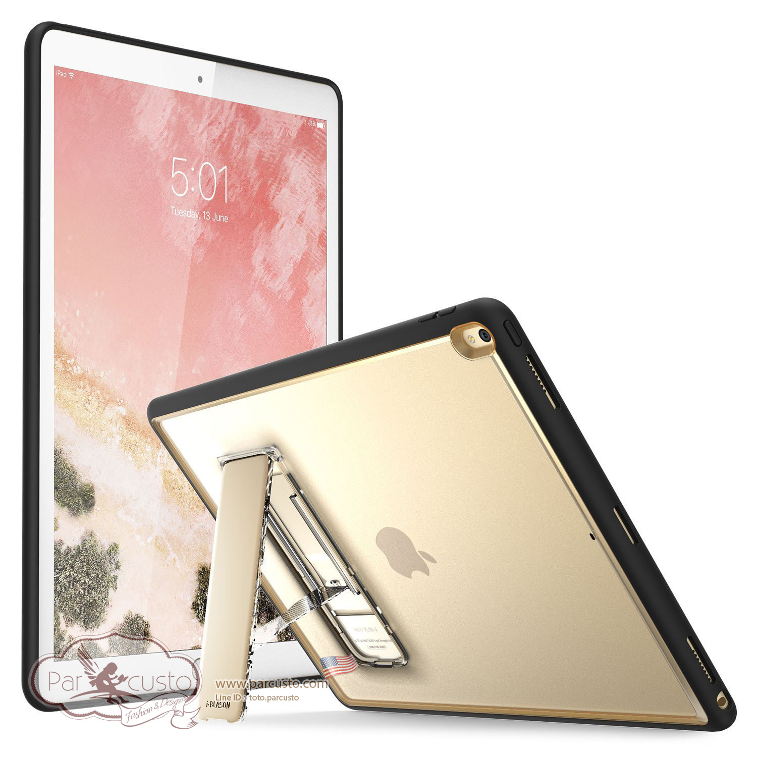Protection meets both style convenience in our Halo case for the iPad Pro 10.5 and 12.9 inch models. Featuring an attractive frost-clear backing that shows off the look of your device and a TPU bumper that absorbs shock during drops and falls, this case even features a fold-out kickstand and raised bezels to protect both your screen and back camera.