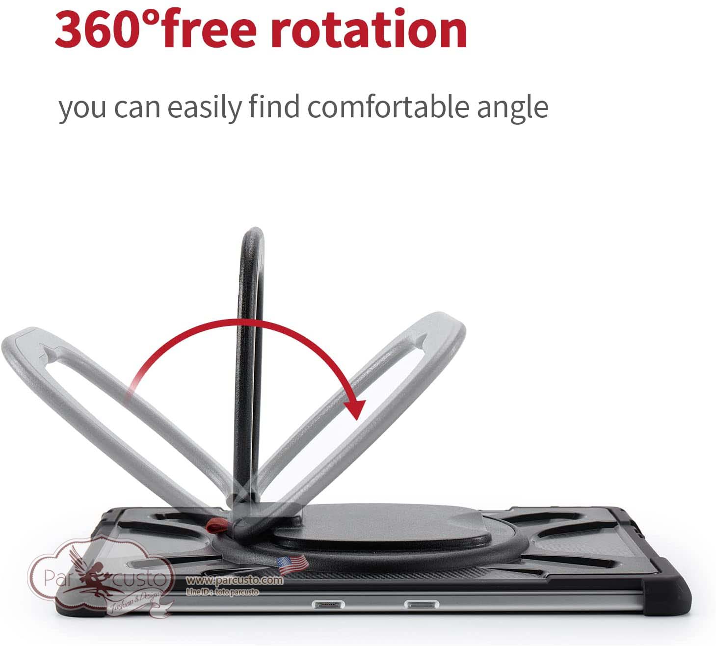• The 360° rotatable stand provides the best position for typing or viewing, suitable for any scene, whether in the car, indoors or outdoors.